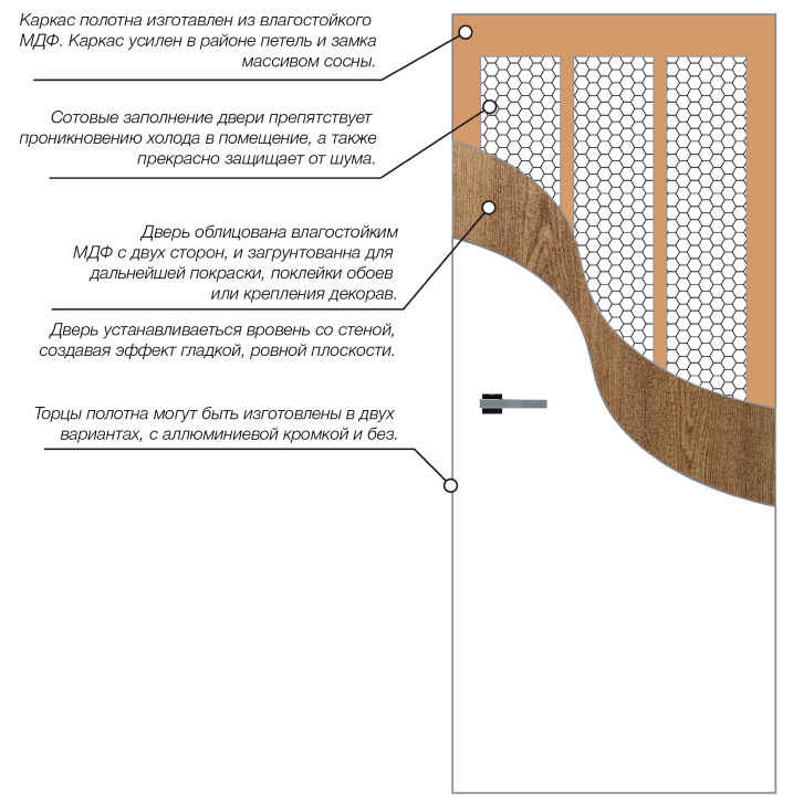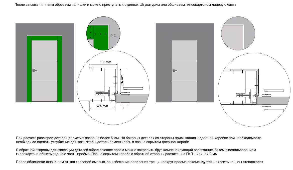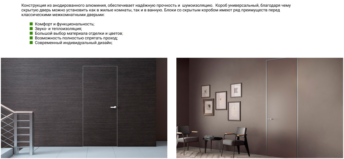 Качественные скрытые двери обеспечивают шумоизоляцию до 40 дБ, создавая комфортные условия для отдыха и работы.